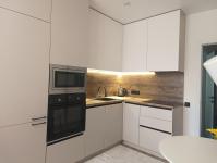 В квapтиpe сделан качественный ремонт из экологически чистых материалов: пробковый пол, кухонный гарнитур с панелями из натурального дерева.
