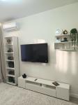 Имеется встроенная бытовая техника: посудомоечная машина, варочная поверхность, духовой шкаф, вытяжка, а также холодильник, телевизор, стиральная машина, водонагреватель, микроволновка, кондиционер. Есть посуда, чайник, постельные принадлежности.