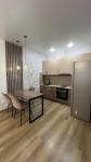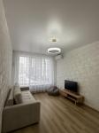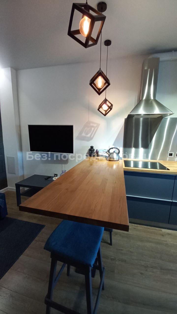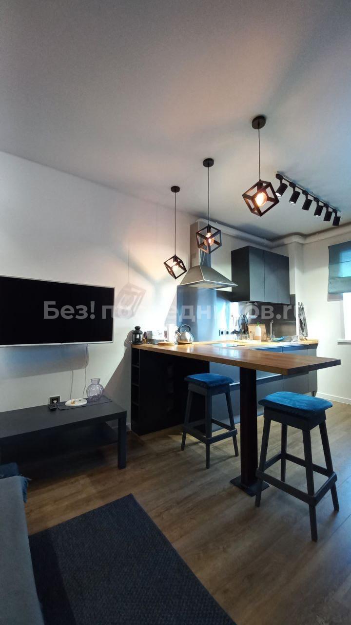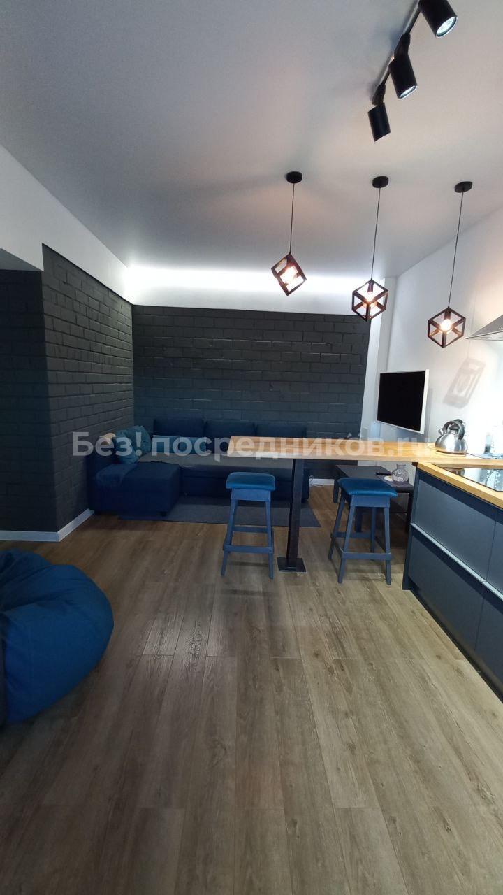Квартира представляет собой евродвушку с удобной планировкой: кухня и гостиная совмещены и есть отдельная комната.
