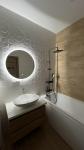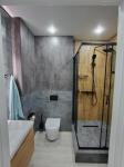 Новая душевая кабина, водонагреватель, стиральная машина.