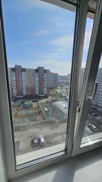 В квартире только что выполнен косметический ремонт, стены светлые, потолки натяжные. Санузел совмещенный, оформлен качественной плиткой, установлена современная сантехника. Из окон открывается вид на двор, где расположена детская площадка и открытая парковка.