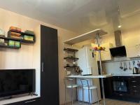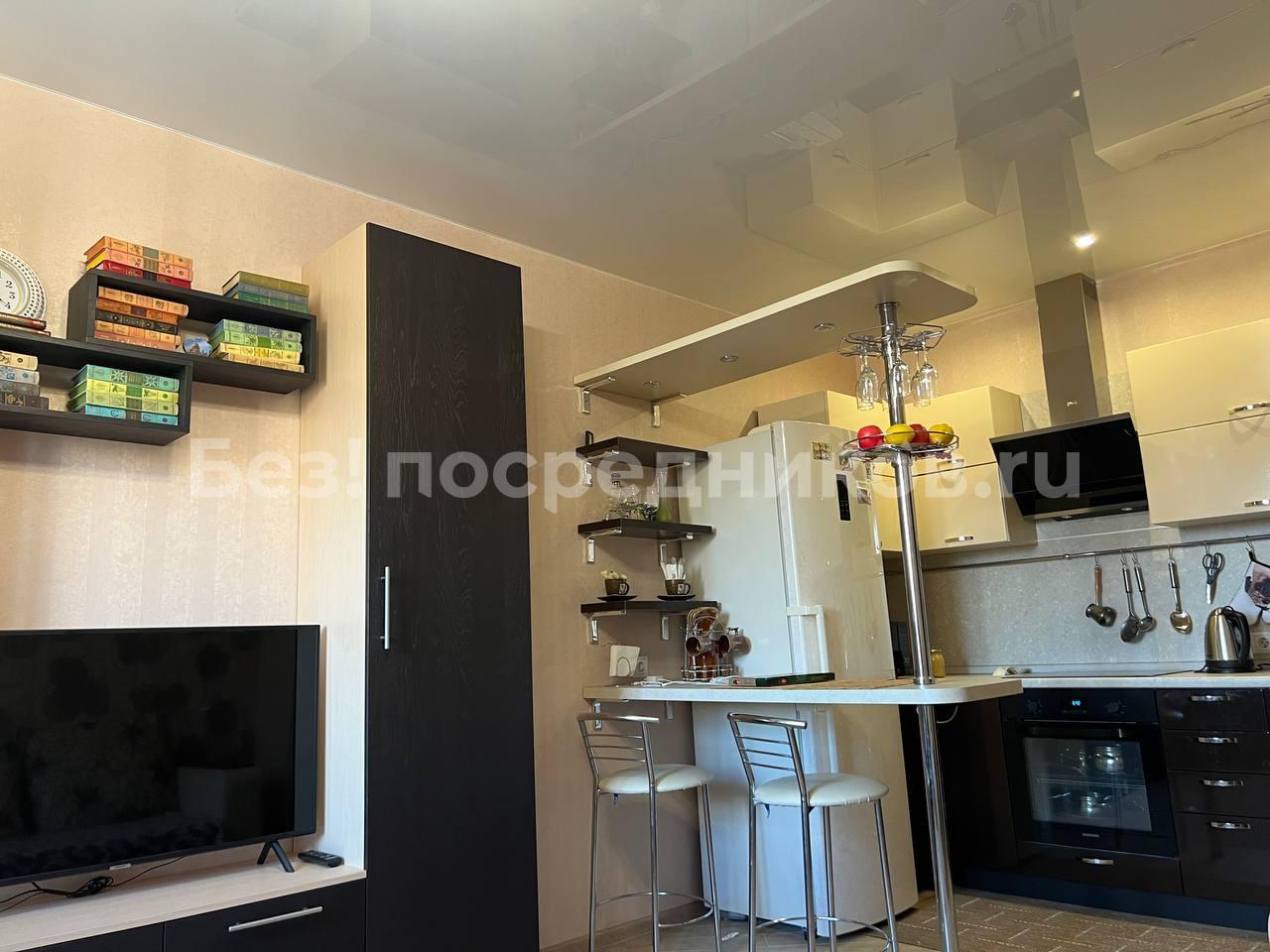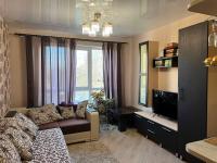 Ламинат,натяжные потолки, встроенные шкафы с зеркальной дверью. Мебель, телевизор, электрическая плита, чайник, холодильник, микроволновка, стиральная машина. Есть водонагреватель.
