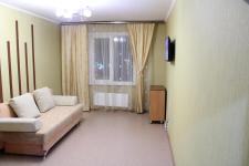 Квартира светлая и просторная. Жилая площадь составляет 50 м², комнаты по площади большие, изолированные. В квартире имеется вся необходимая мебель: спальное место (просторная двуспальная кровать и раскладной диван) , стильный кухонный гарнитур, плита, чайник, стиральная машинка и обеденная зона, в коридоре шкаф-прихожая, в комнате вместительный шкаф для одежды, установлен кондиционер, на окнах есть шторы. Санузел, из кафеля, выполнен в стильном мраморном дизайне, .В комнатах ламинат, моющиеся обои.