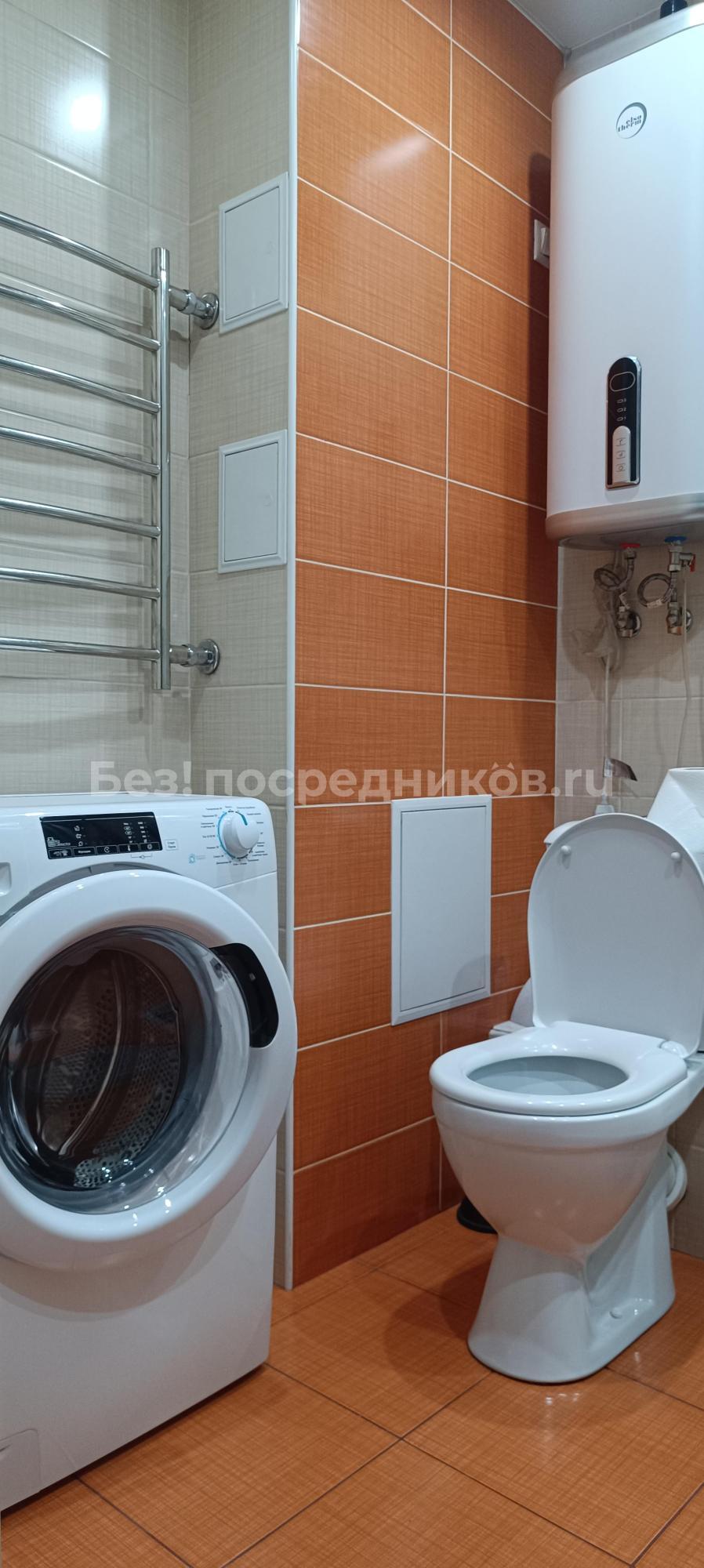1-комнатная квартира, 45,8 м², 1/17 эт. Мебель - всё как на фото. Бытовая техника: холодильник, чайник, электроплита с духовым шкафом, пылесос, водонагреватель в ванной, стиральная машина.