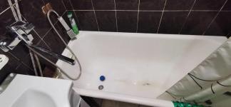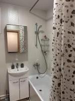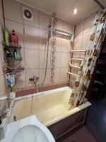 Общий душ и туалет. В комнате есть холодильник, микроволновка, пылесос, мини плита, чайник и небольшое количество мебели, на фото всё видно, комната уютная, но общие помещения не в лучшем состоянии