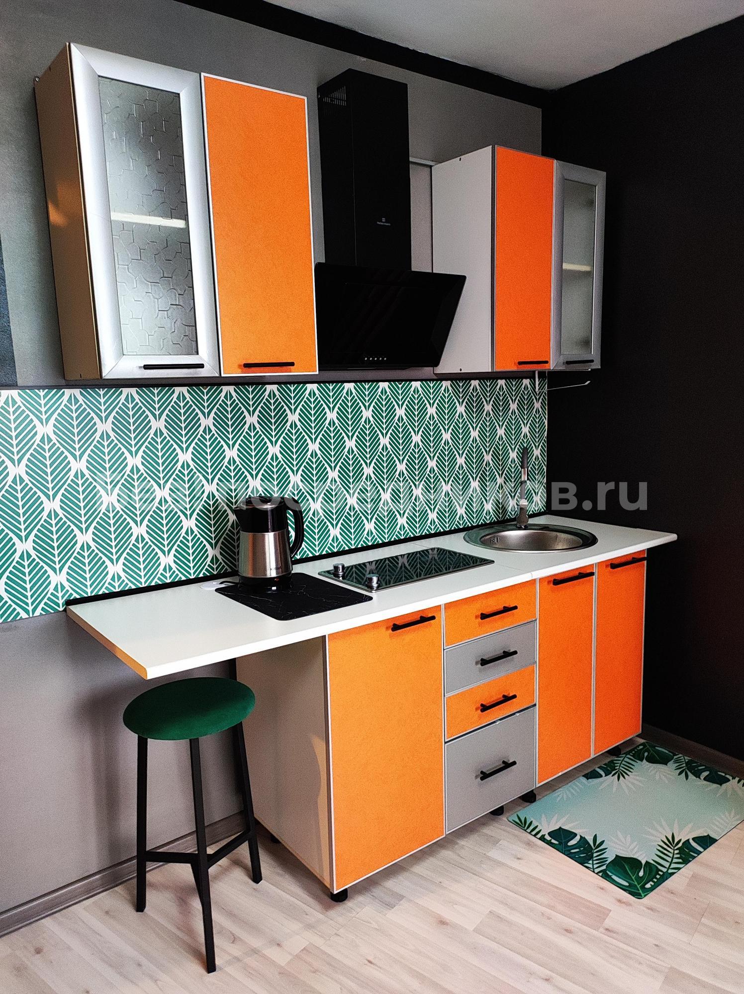 В квартире есть кухонный гарнитур, стол, стулья, двуспальная кровать, односпальная кровать, шкафы, телевизор, тумба, холодильник, эл.плита, микроволновая печь, эл. чайник, стиральная машина, постельное белье, полотенца,посуда, утюг, гладильная доска, сушка.