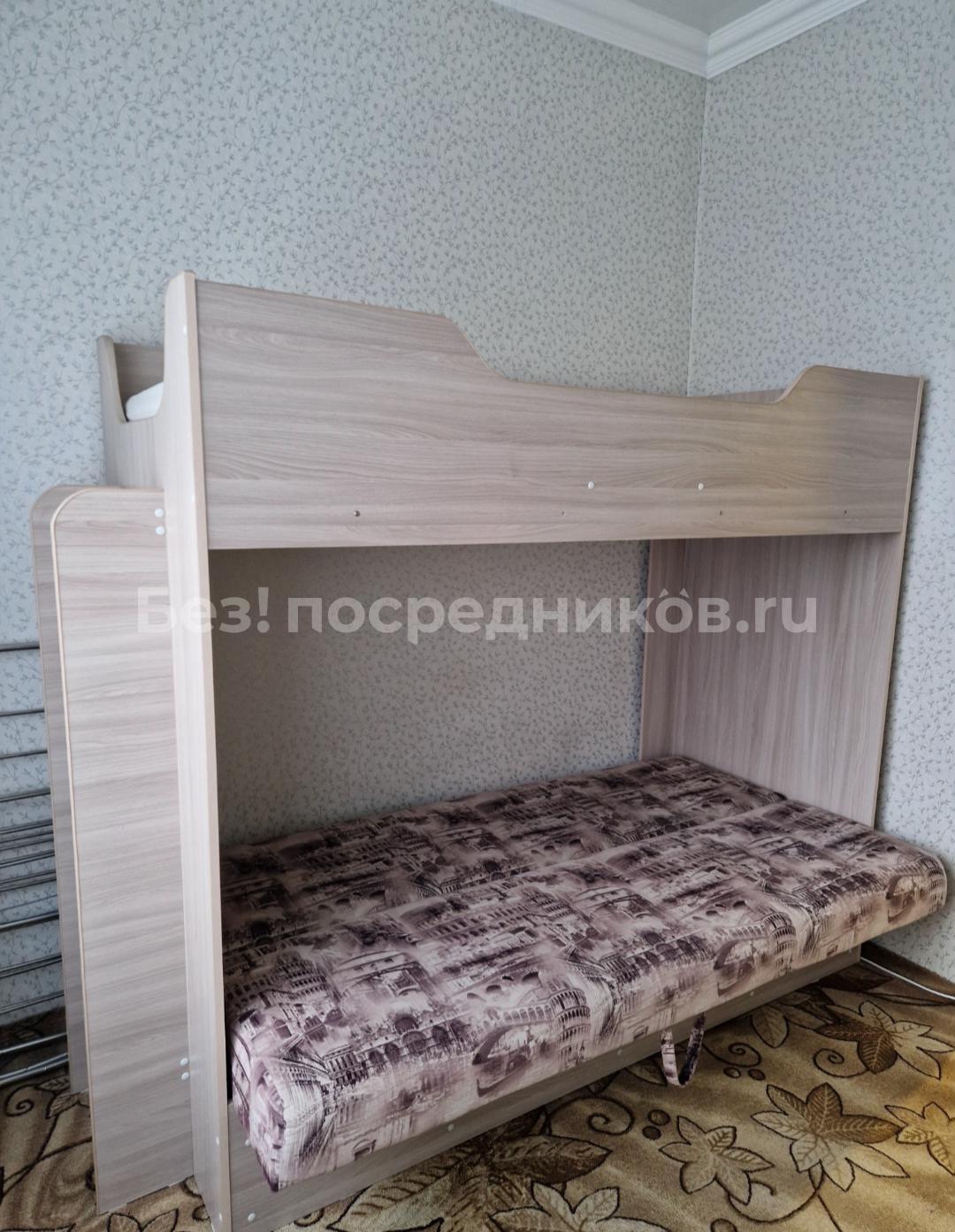Двухъярусная кровать-диван, шкаф, встроенный шкаф, утюг, пылесос, обогреватель (в квартире зимой прохладно),кухонный гарнитур, настольная электро плитка, стиральная машина, мини холодильник, микроволновка.