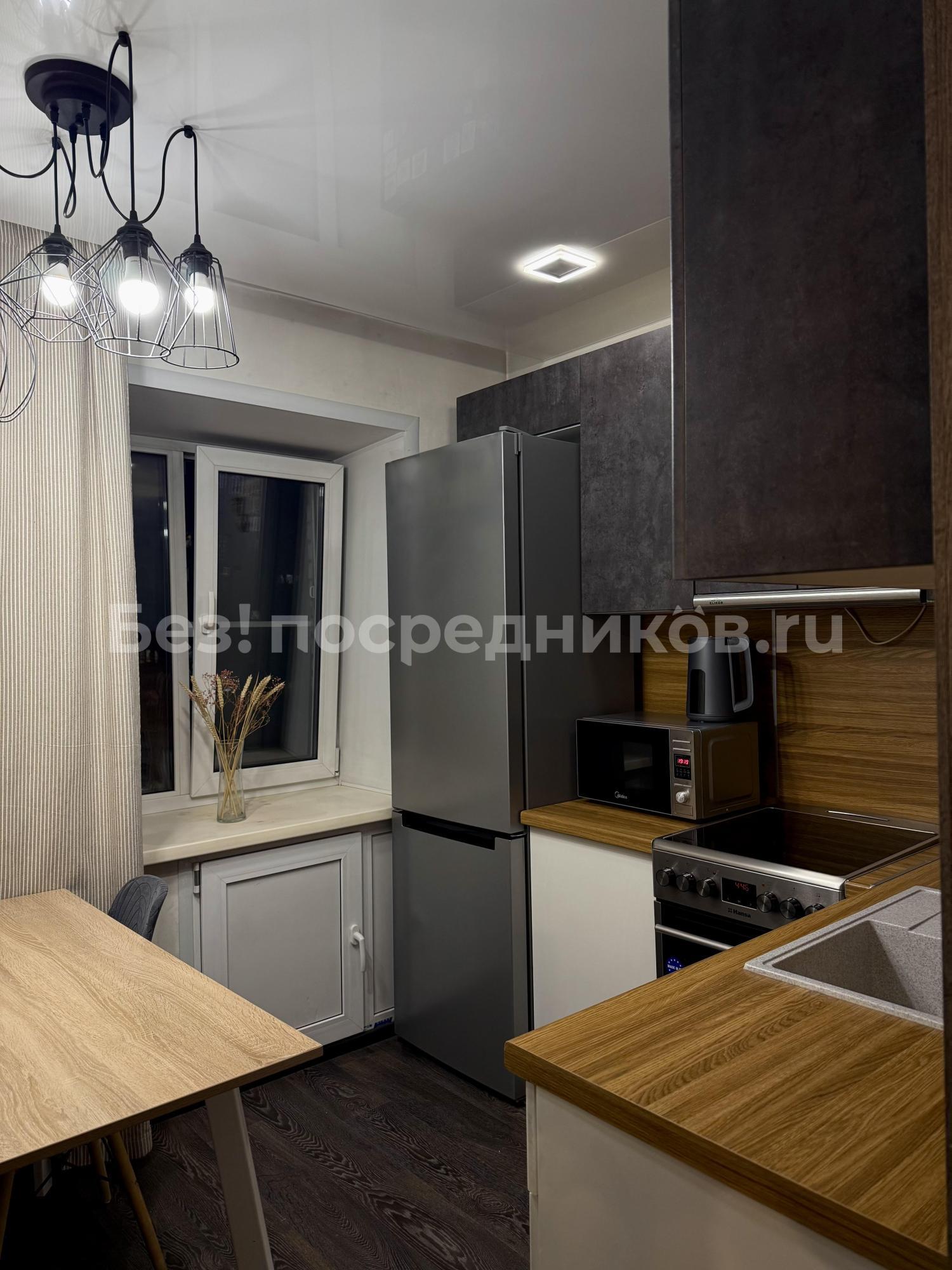 В квартире сделан качественный евроремонт, установлен полный комплект бытовой техники: современная кухня, удобная техника для стирки и готовки, просторная комната.