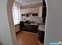 В квартире есть вся необходимая мебель и техника (диван, шкаф с плечиками, кухонный гарнитур, стол и стулья, электрическая плита, стиральная машина, холодильник), остекленная лоджия
