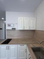 Кухня площадью 8 мг оборудована всем необходимым для комфортного приготовления пищи. В гостиной установлено 2 шкаф для хранения вещей.