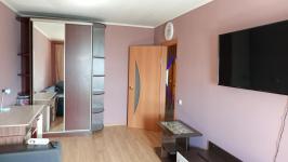Ламинат,натяжные потолки, встроенные шкафы с зеркальной дверью. Мебель, телевизор, электрическая плита, чайник, холодильник, микроволновка, стиральная машина. Есть водонагреватель.