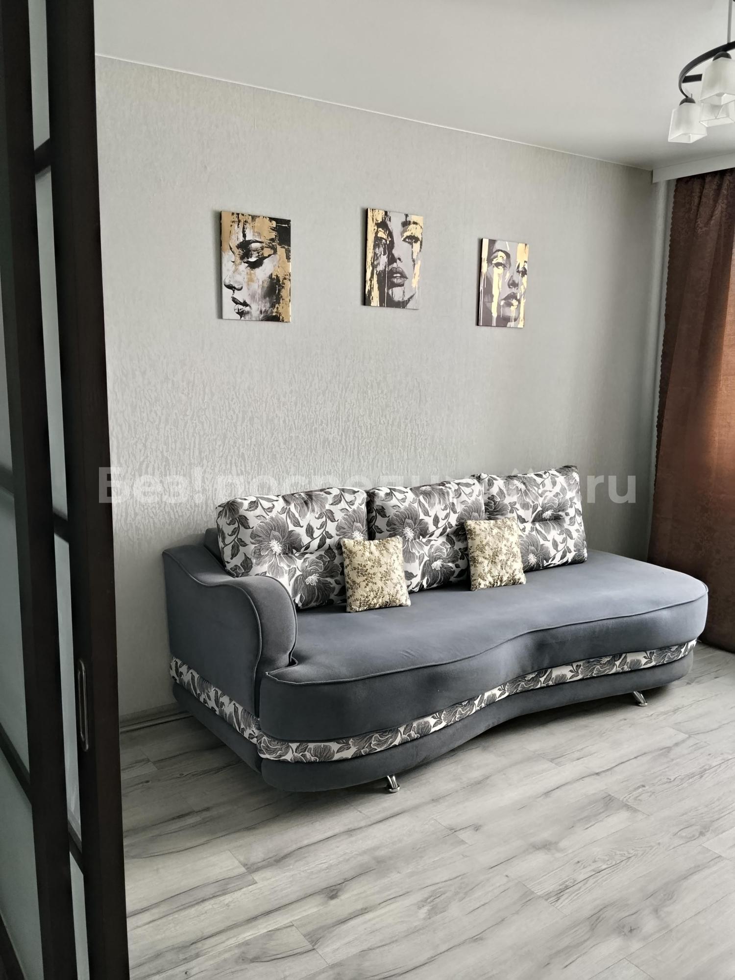 22000+ квитанция.Залог 5000. В квартире: новый диван, огромный встроенный шкаф купе, кухонный гарнитур, чайник, плита, стол и стулья, комод, стиральная машина, утюг, гладильная доска, кастрюли и так по мелочи..