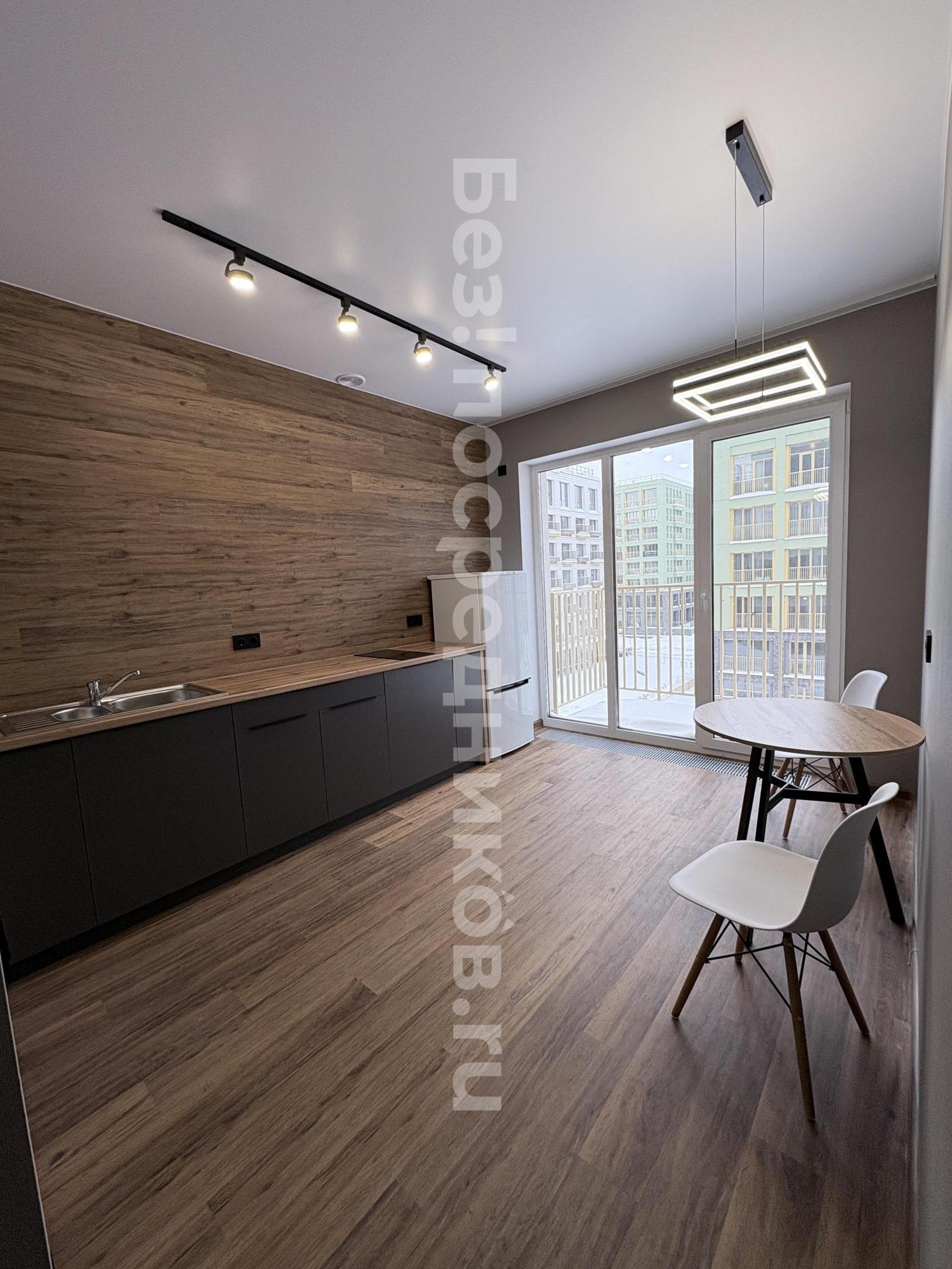 Квартира представляет собой евродвушку с удобной планировкой: кухня и гостиная совмещены и есть отдельная комната.