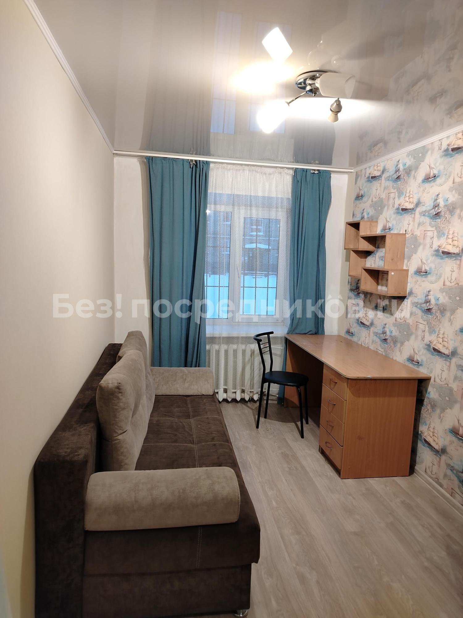Квартира расположена на первом этаже кирпичного дома, построенного в 1960 году. В квартире выполнен косметический ремонт, комнаты смежные. В наличии вся необходимая мебель: шкафы, диван, письменный стол. Из техники имеется холодильник, стиральная машина и микроволновая печь.