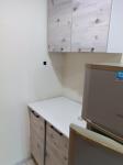 Кухня общего пользования: Кухонный гарнитур, электрическая плита, стиральная машина, микроволновка, холодильник.