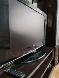 Есть телевизор, холодильник, чайник, микроволновка, утюг и фен.