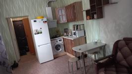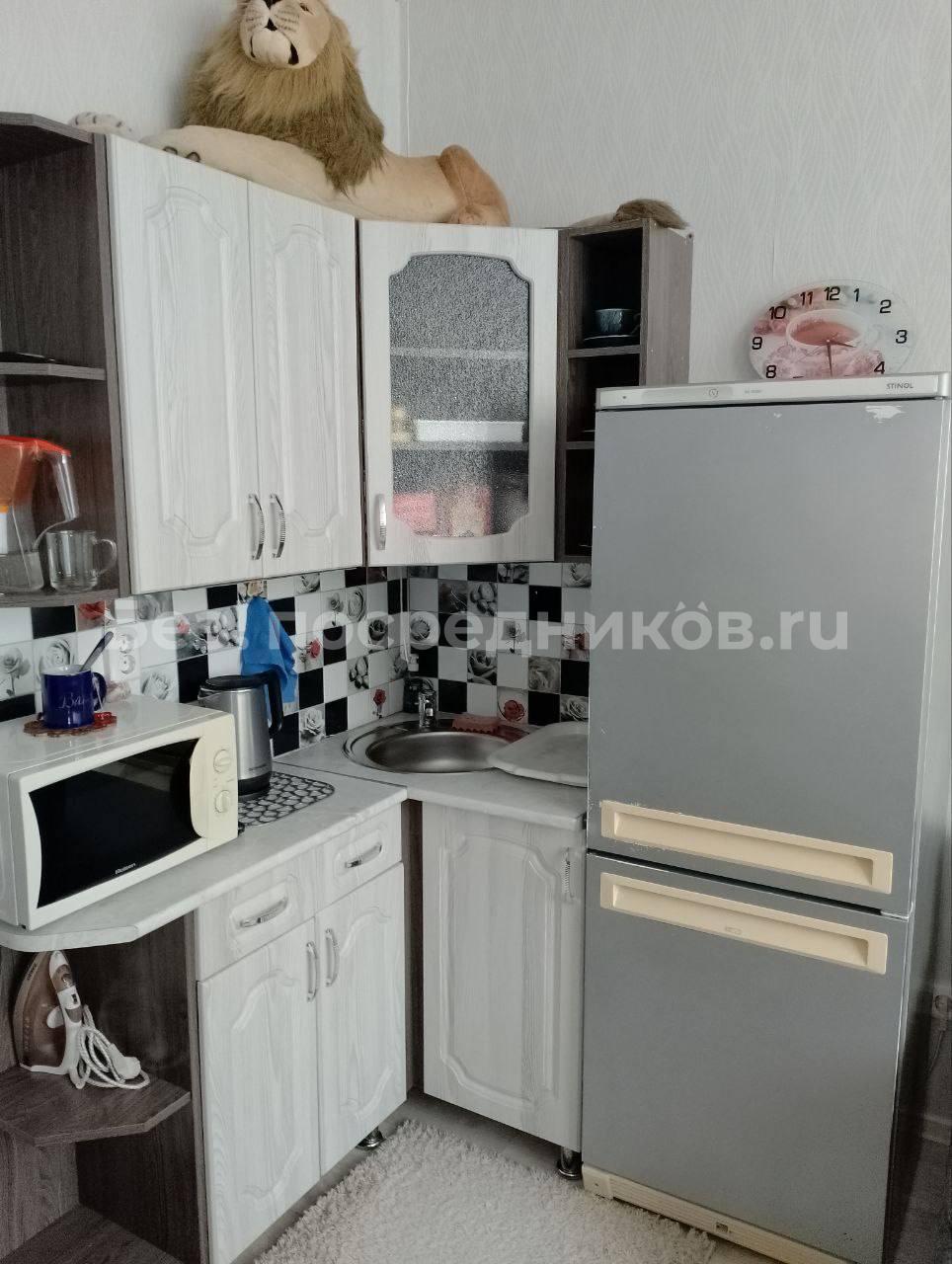 В квартире есть кухонная мебель, холодильник, микроволновка;