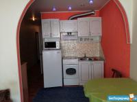 Ну кухне: кухонный гарнитур, стол и стулья, электроплита, стиральная машина, чайник. также есть одноместная кровать - можно использовать как дополнительное спальное место или просто как кушетку для сидения.