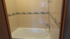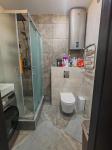 В квартире чистый, светлый санузел с тропическим душем, есть просторный шкафчик для хранения.