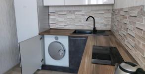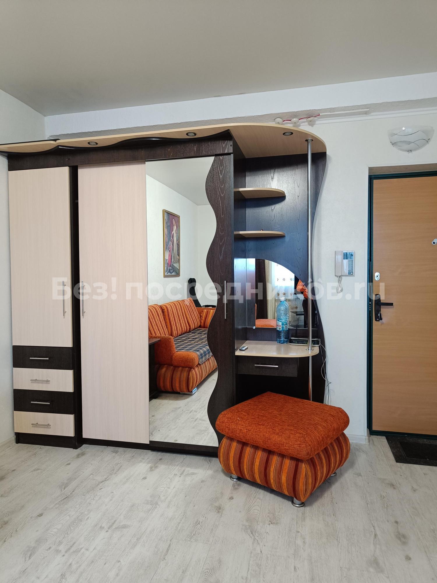 В квартире есть большой шкаф, диван, холодильник, кухонный гарнитур, варочная панель (электрическая), вытяжка которая отлично функционирует, чтоб у вас не было в комнате запаха еды, барная стойка и стулья(можем убрать, поставить стол и стулья, по вашему желанию), стиральная машина автомат (новая без запаха, плесени и ржавчины, с магазина) , прихожая группа.