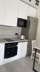 В квартире все новое, никто не жил. Полностью новая мебель и техника. Холодильник, телевизор, плита, духовой шкаф, микроволновая печь, стиральная машина, вай фай. Новые шкафы, система хранения. В ванной тропический душ, инсталляция, зеркало с подсветкой. Два дивана. Кухонный стол и стулья. Также встроена рабочая зона (письменный стол и шкаф).