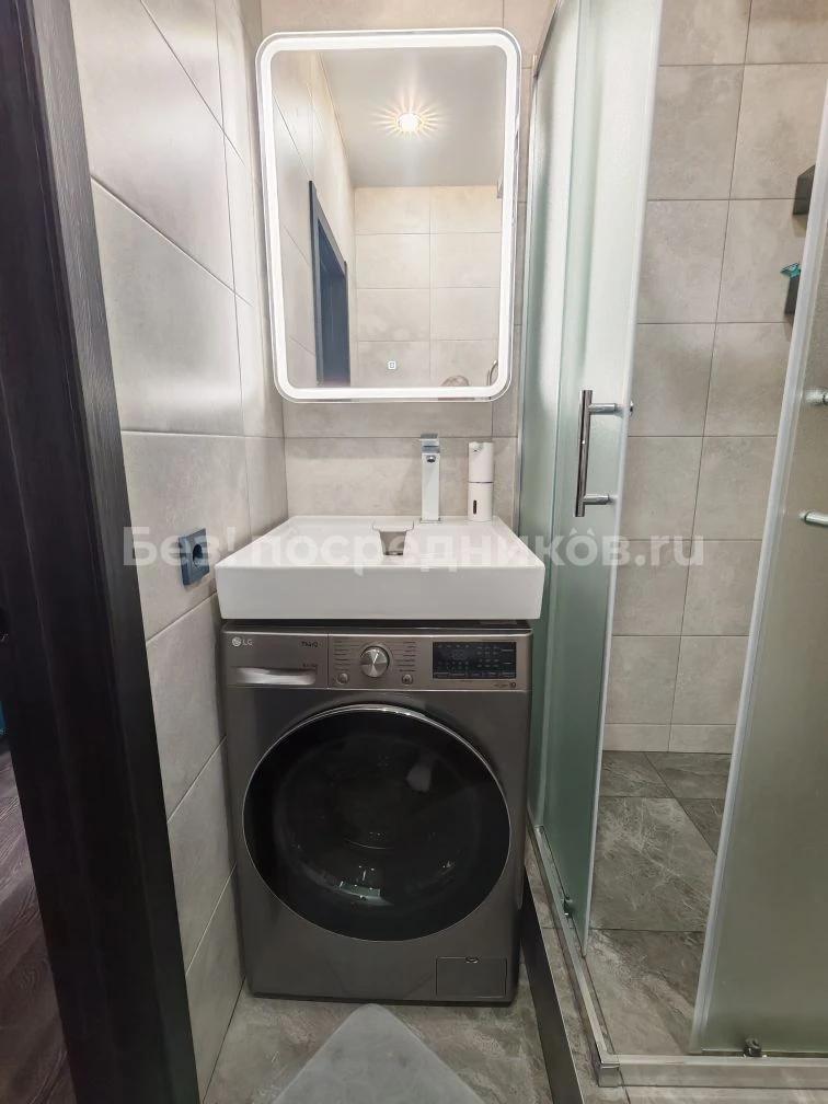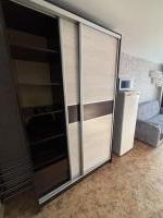Ламинат,натяжные потолки, встроенные шкафы с зеркальной дверью. Мебель, телевизор, электрическая плита, чайник, холодильник, микроволновка, стиральная машина. Есть водонагреватель.