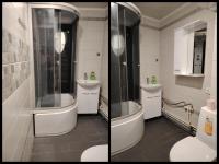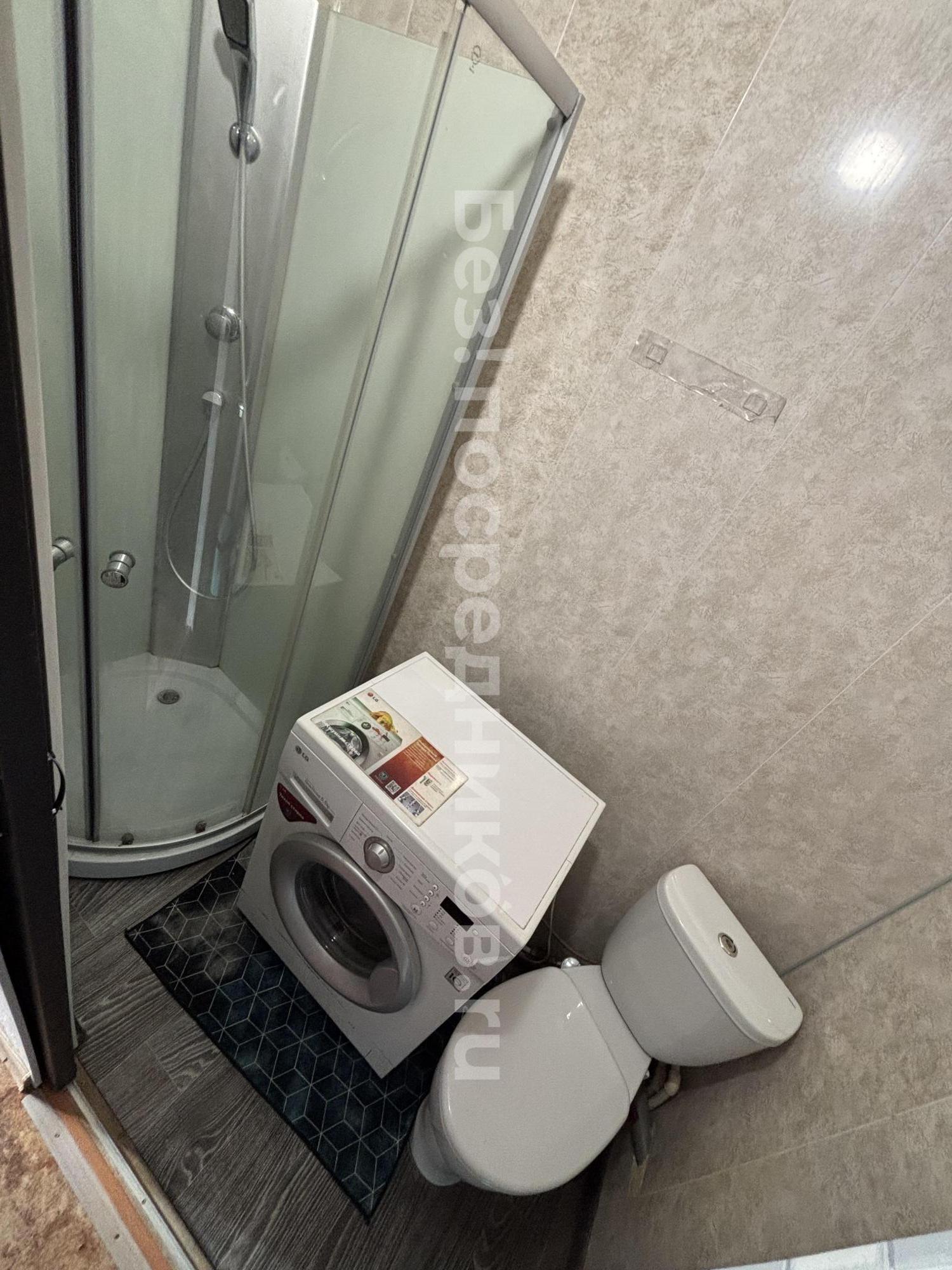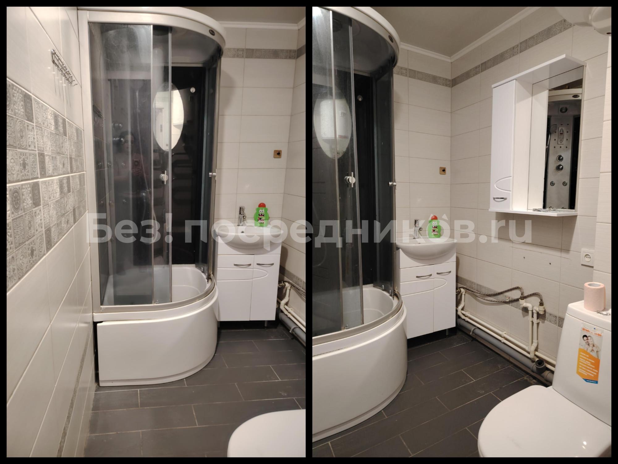 Новая душевая кабина, водонагреватель, стиральная машина.