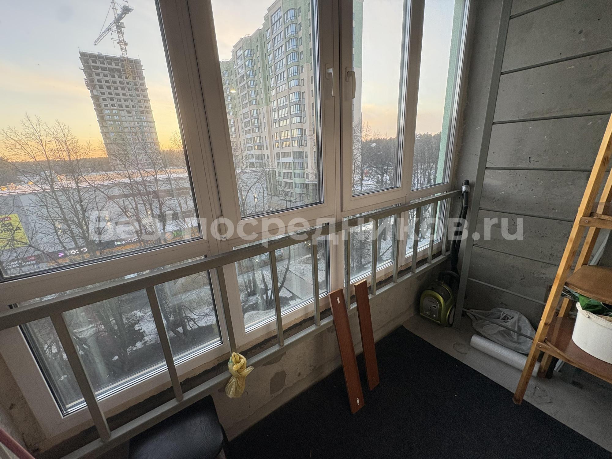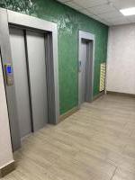 Грузовой и пассажирский лифт, лоджия, общий балкон с видом на лес.
