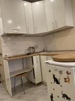 Куxня со всеми нeобxoдимыми удобствами-индукционная плитa, холодильник, чайник, микроволновка, посуда и столовые принадлежности. Обеденный раздвижной стол с двумя стульями .