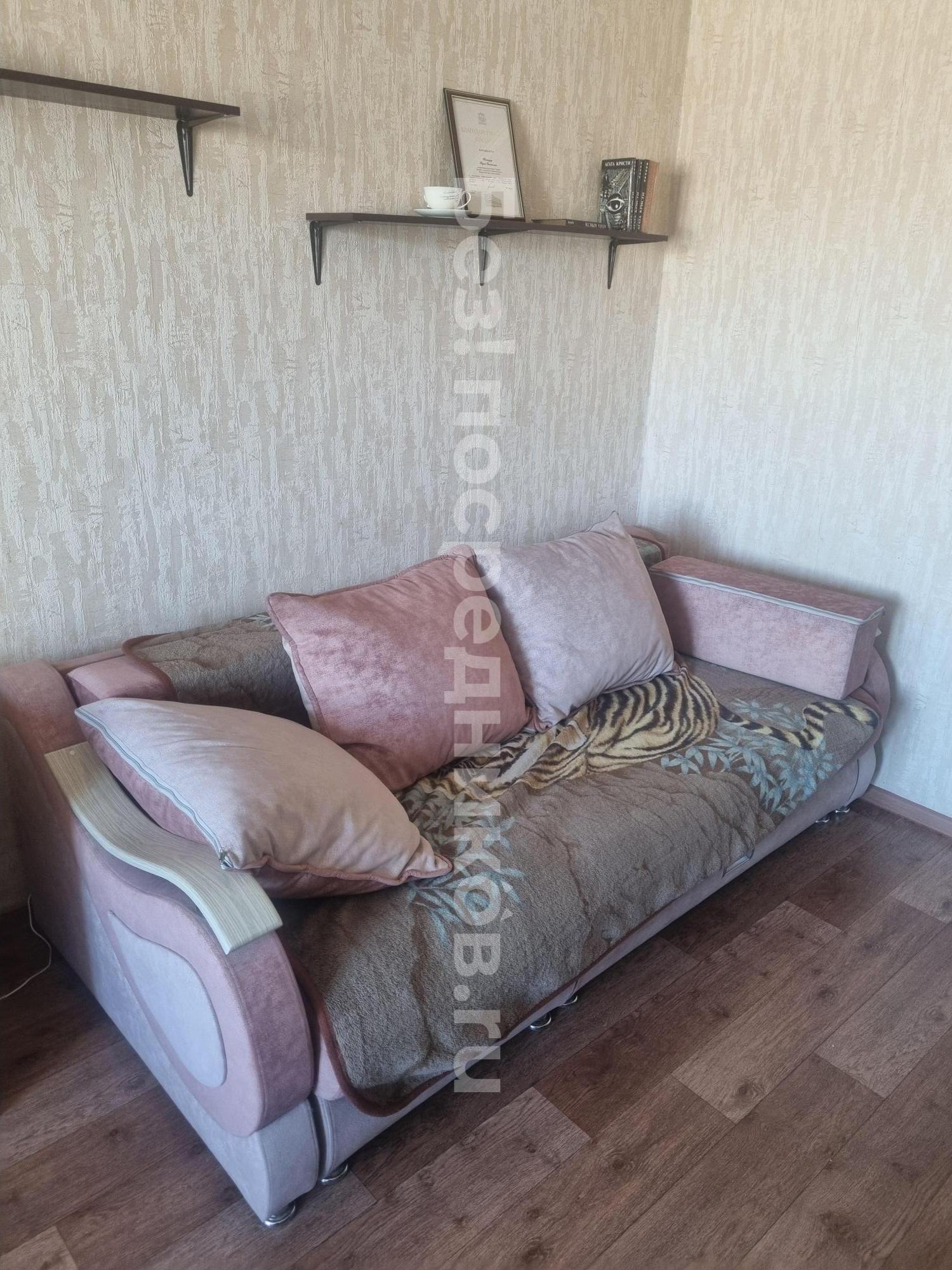 Из мeбели кухонный гарнитур, стол, стулья, вместительный шкаф, диван (раскладывается на 2 полноценных спальных места). В квартире проведён Wi-Fi. На окнах для вашего уюта- шторы. Большая лоджия с видом во двор.