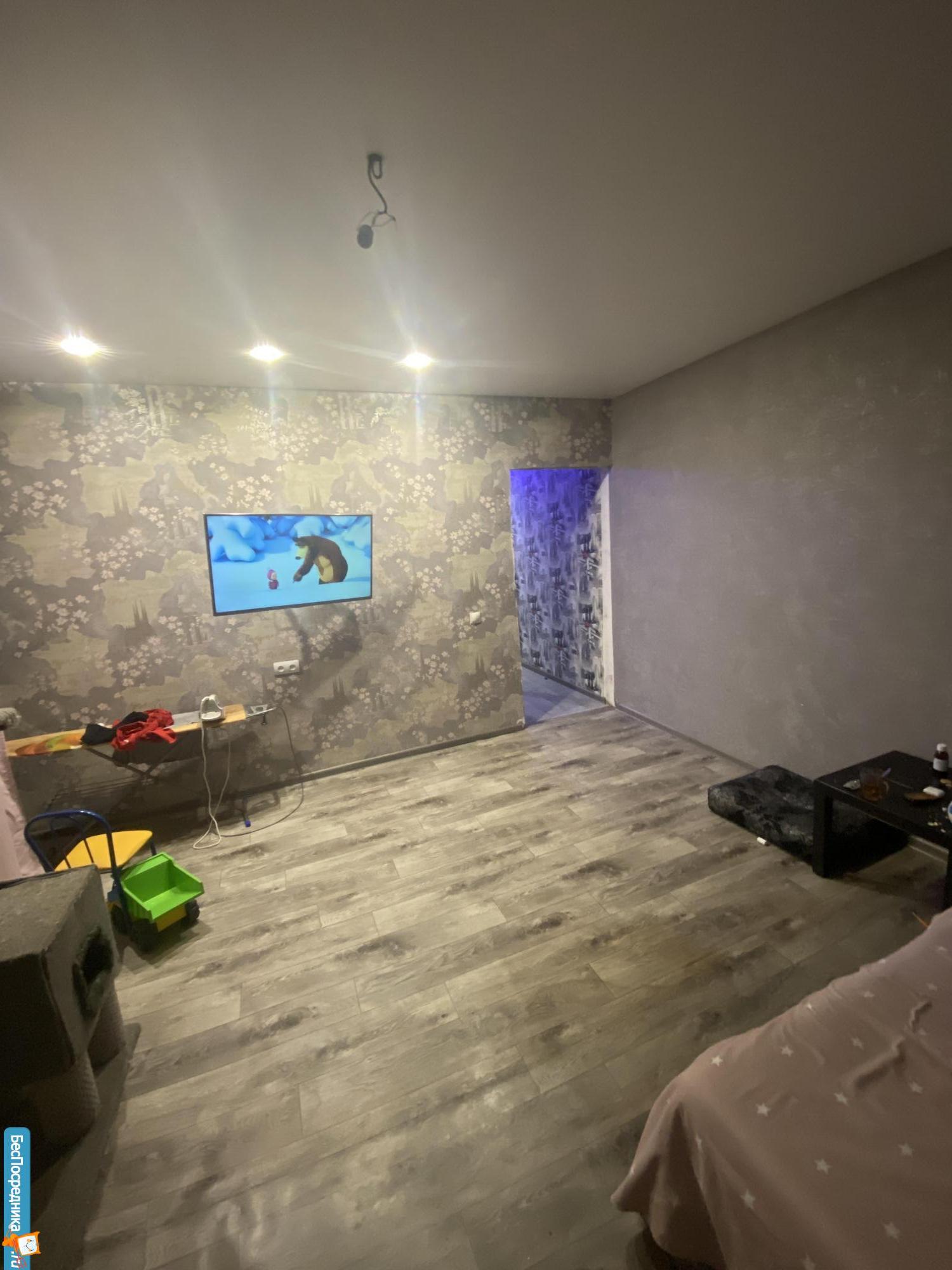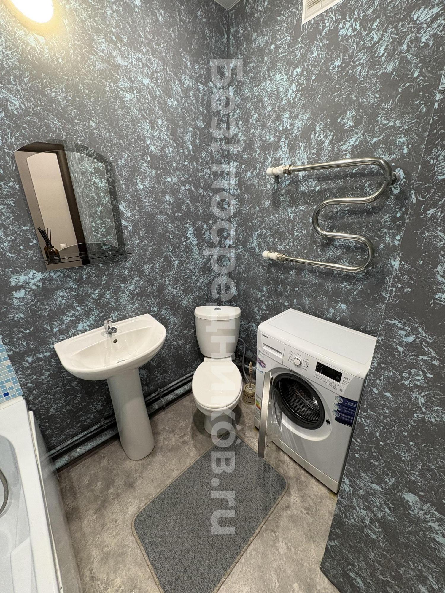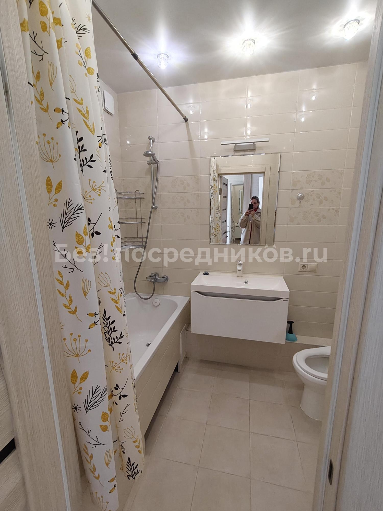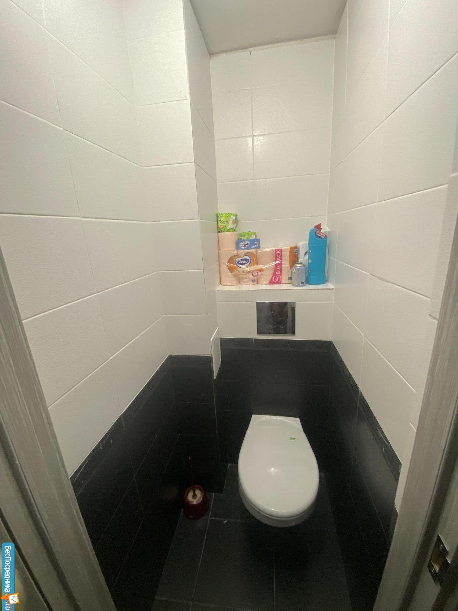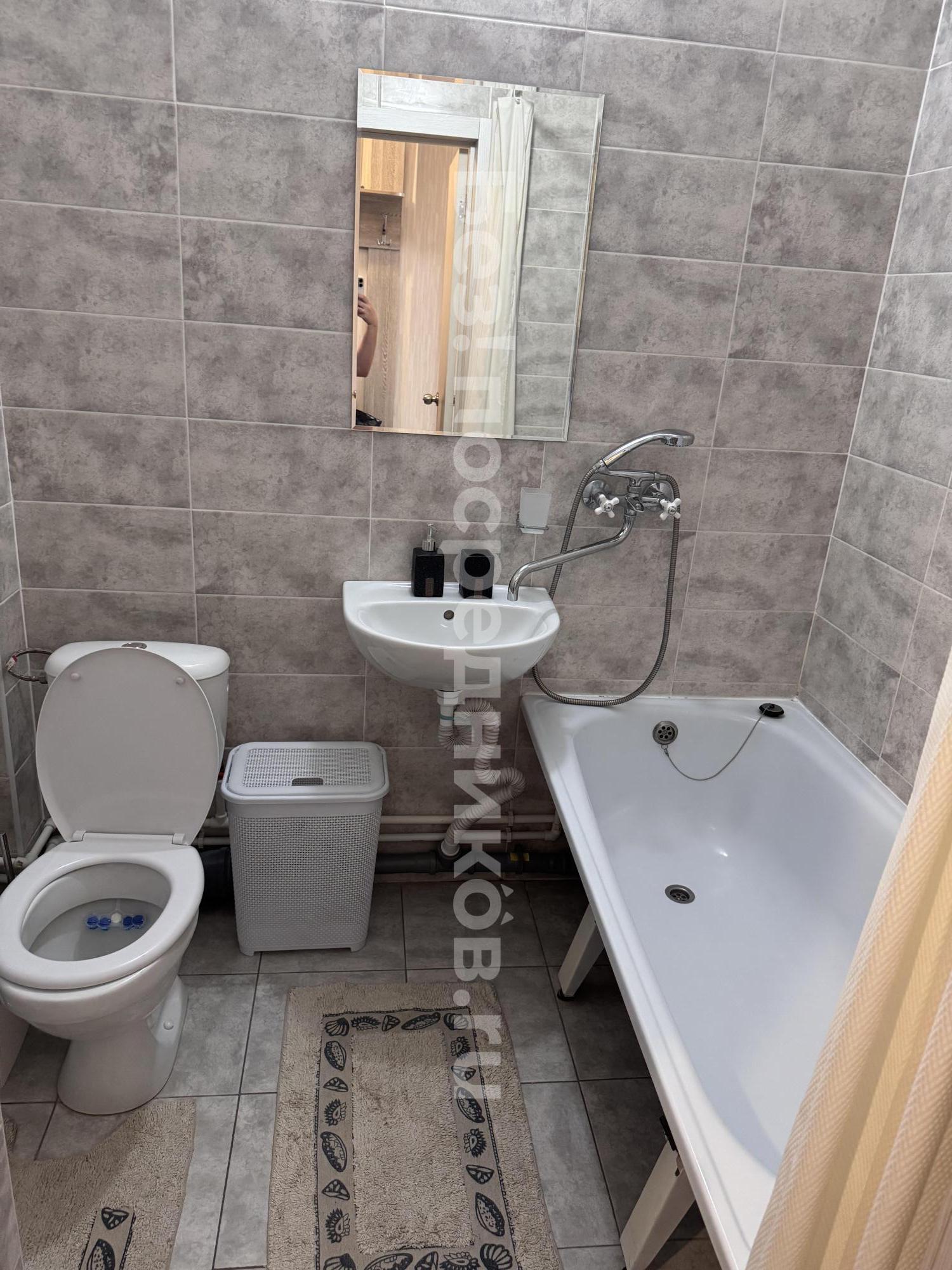 Ремонт современный, в комнате ламинат, в ванне кафель.