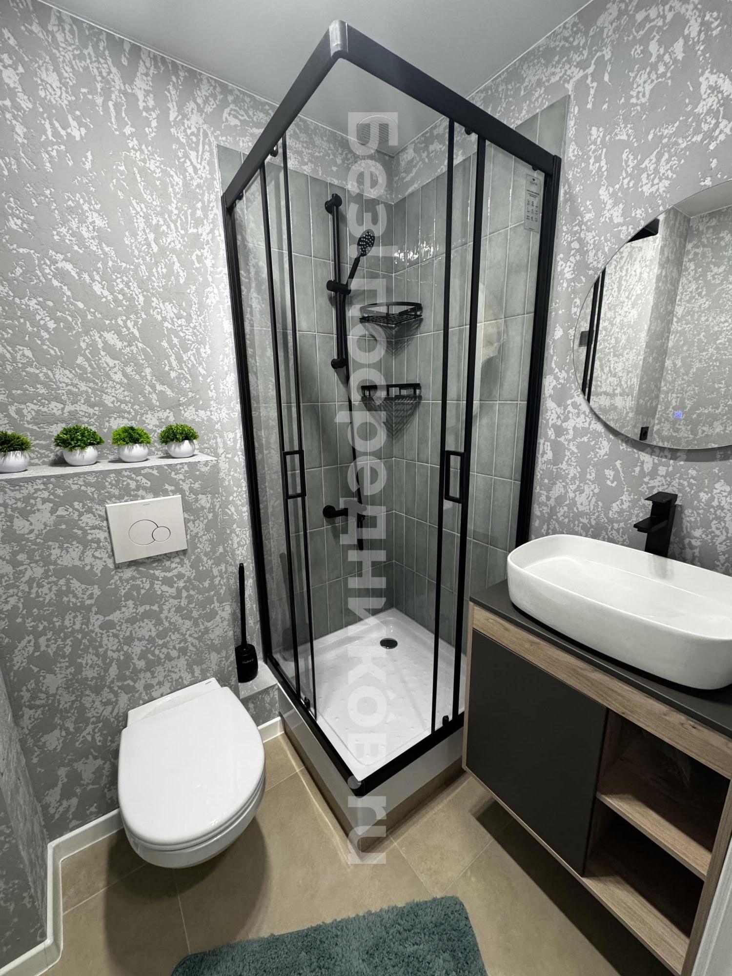 Душ, туалет, раковина на 2 комнаты. Тихо и чисто.