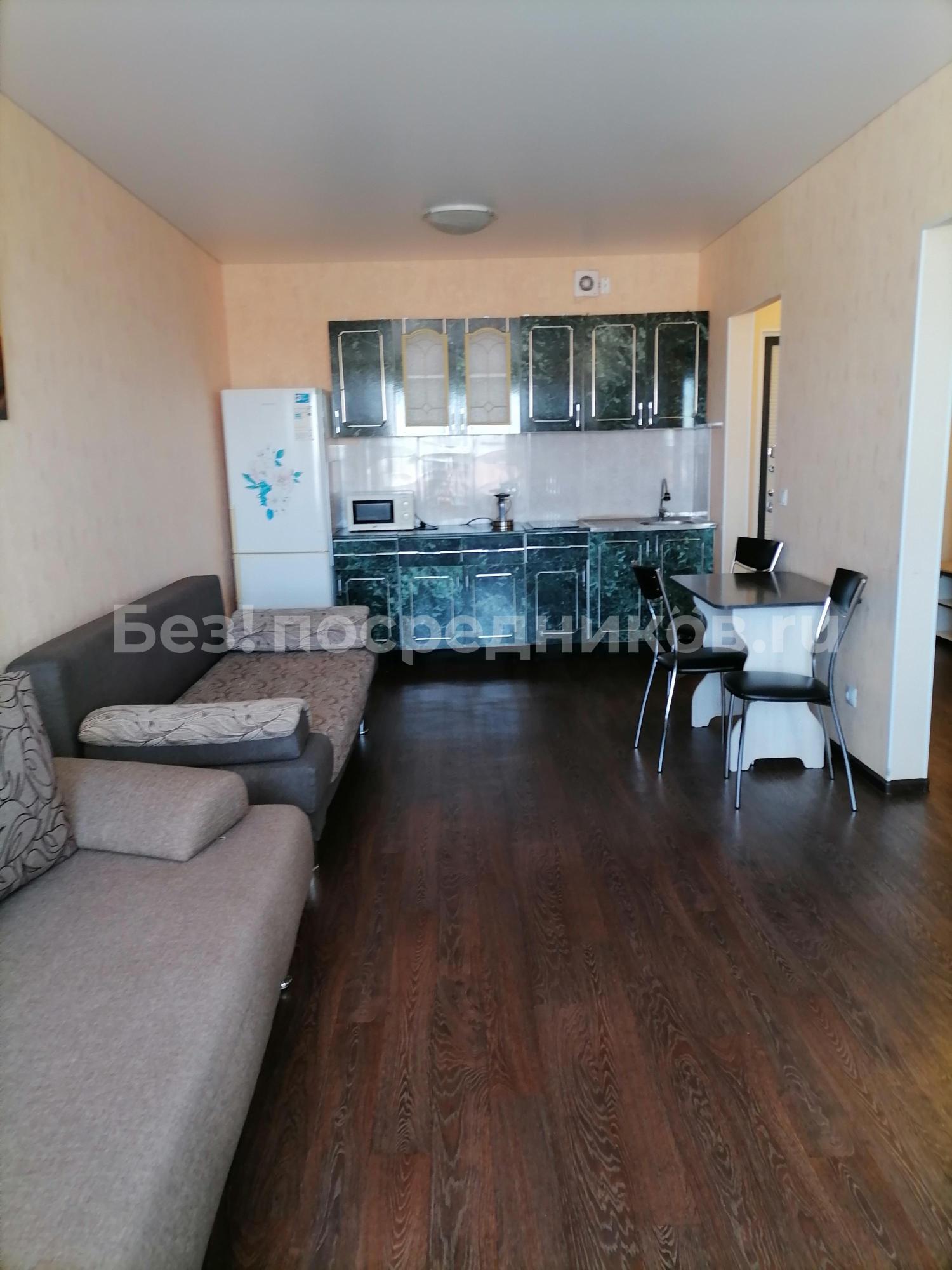 Квартира представляет собой евродвушку с удобной планировкой: кухня и гостиная совмещены и есть отдельная комната.
