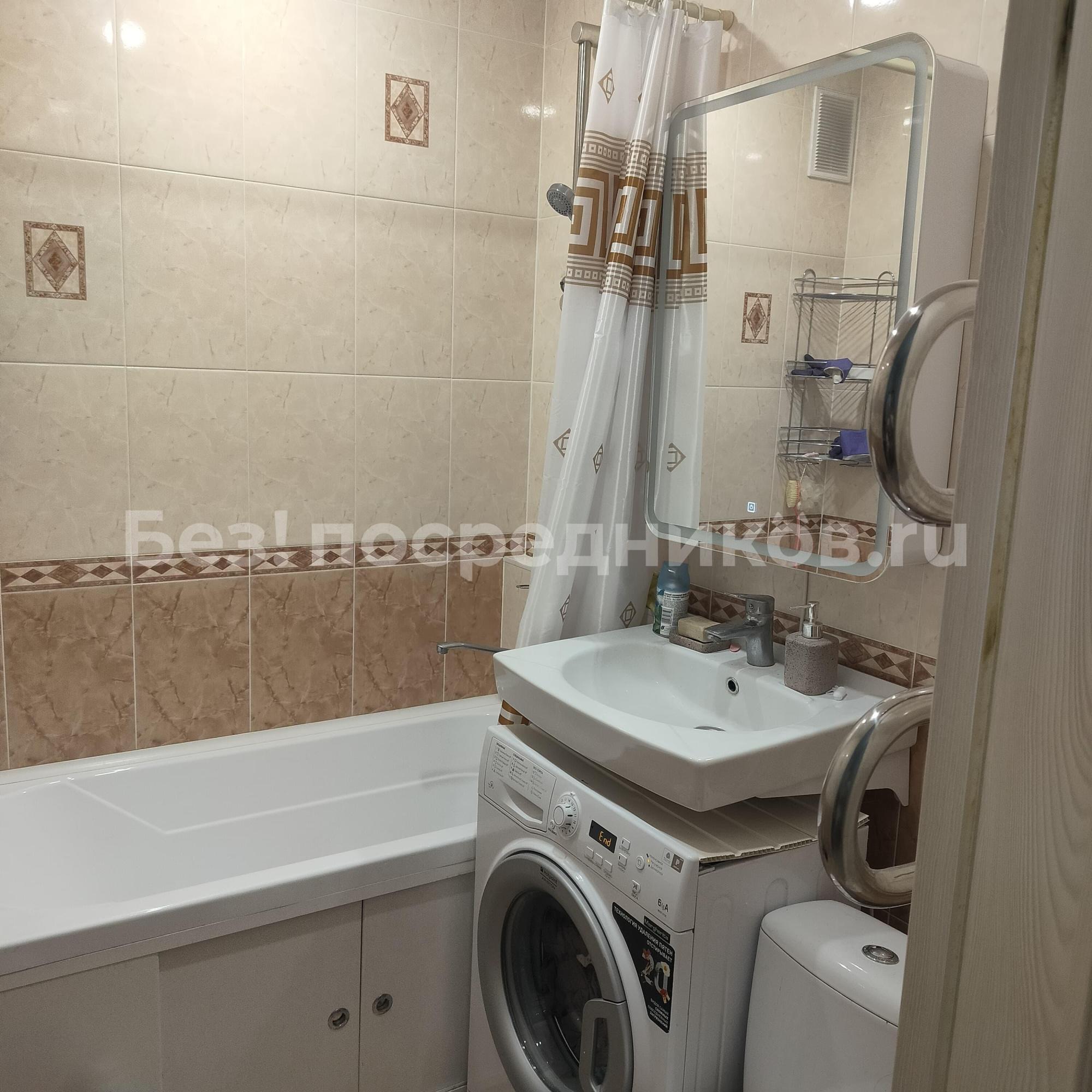 ВАННАЯ КОМНАТА: водонагреватель, стиральная машина, зеркало с подсветкой, тумба под раковиной, унитаз инсталляция. Так же в каждой комнате повешены тюль и шторы.