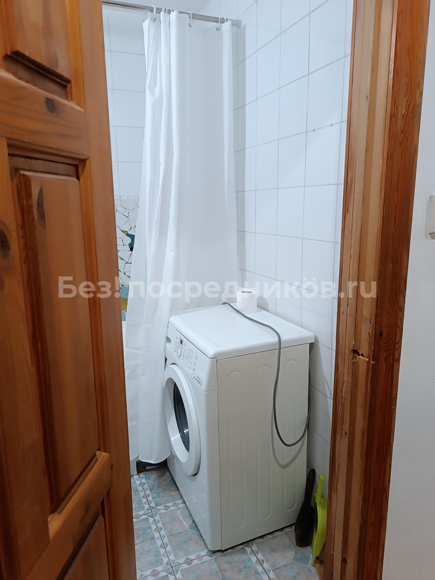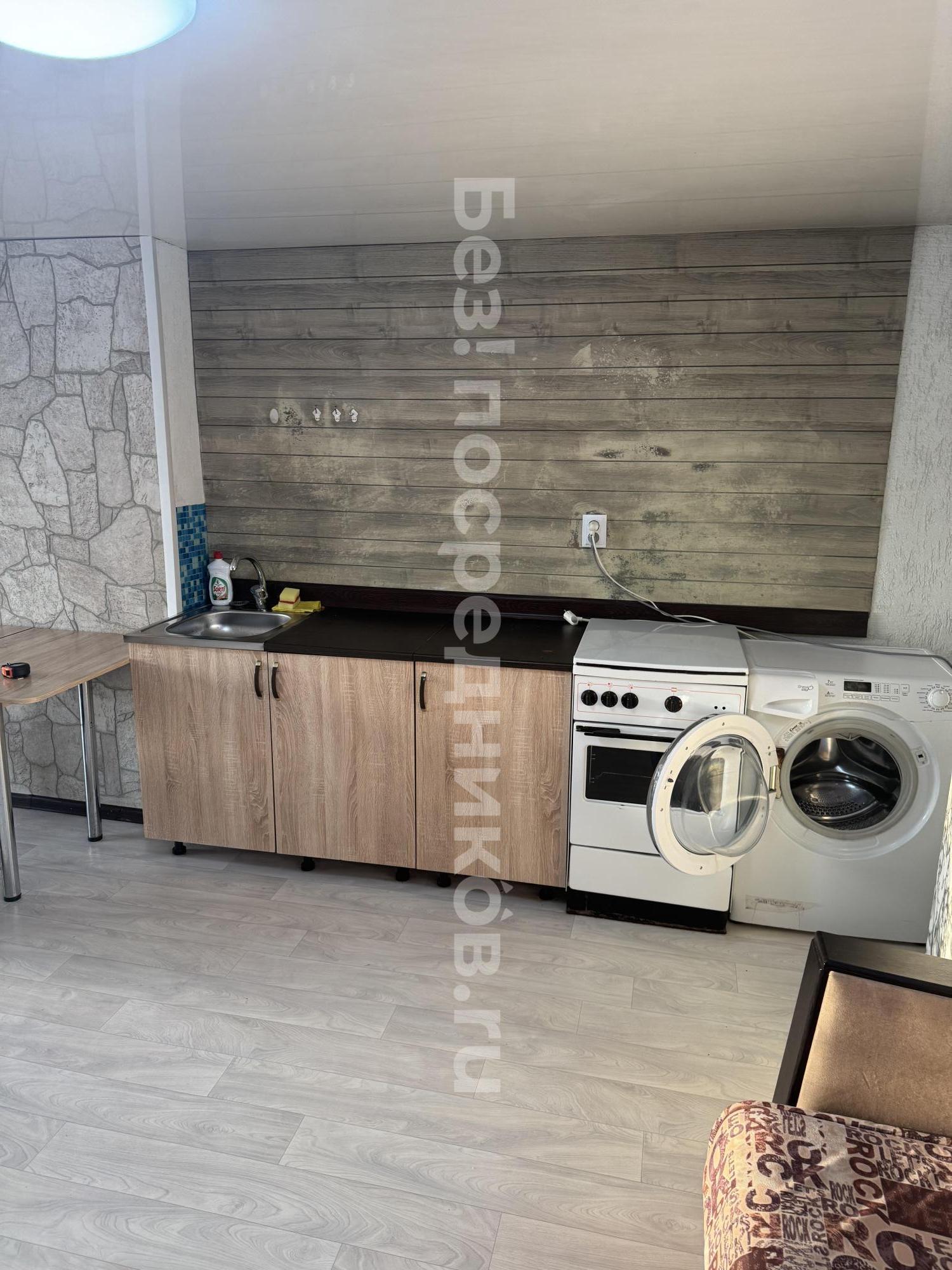 Из мебели имеется шкаф, диван-софа, кухня с варочной поверхностью, элетрический чайник, холодильник, стиральная машина.