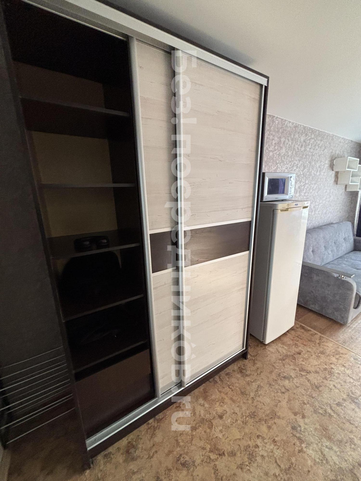 В квартире есть: кухонный гарнитур (с плитой), большой шкаф-купе в зале, и шкаф в спальне.