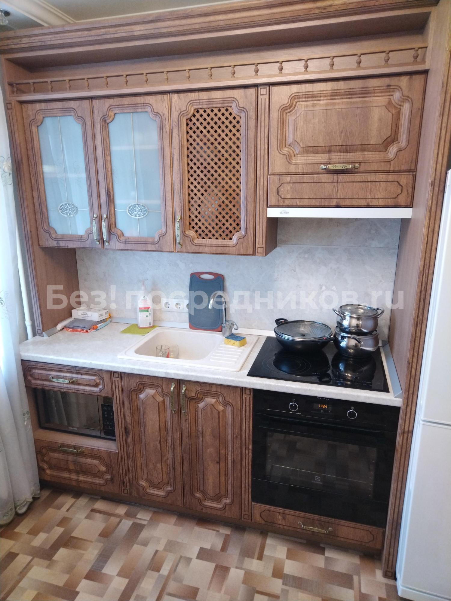 Кухонный гарнитур, элктрическая индукционная плита, духовой шкаф, стиральная машина, большой вместительный холодильник, вытяжка, микроволновка, эл. чайник, кондиционер, большое зеркало в прихожей.