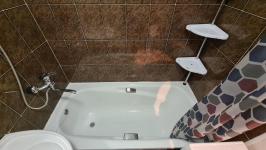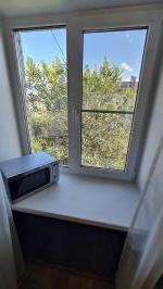 В квартире установлены пластиковые окна, потолок натяжной (белый глянец), на полу лежит линолеум с имитацией «живого дерева», есть лоджия обшитая деревом, ванная комната вся в кафеле, санузел совмещенный.