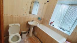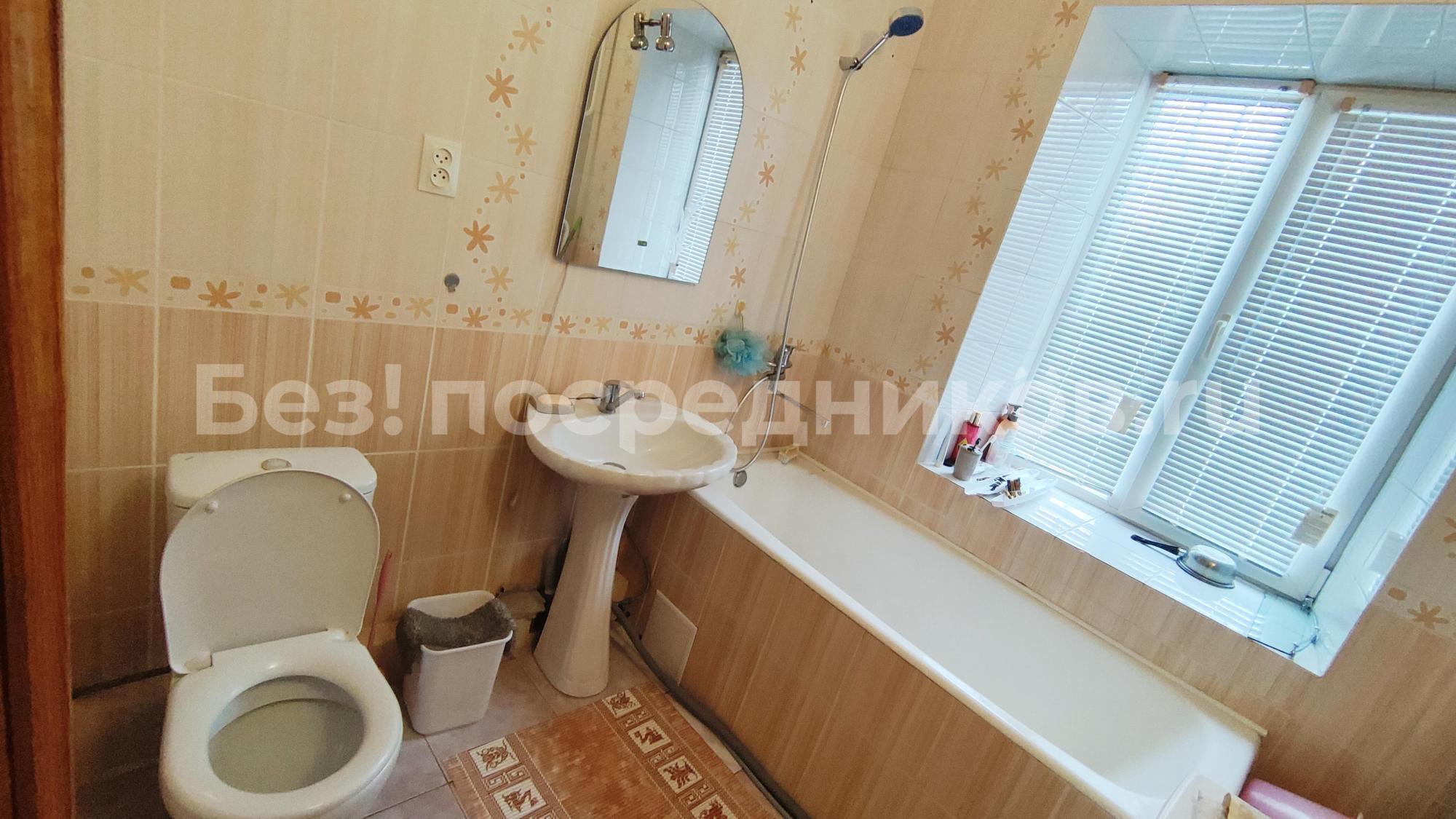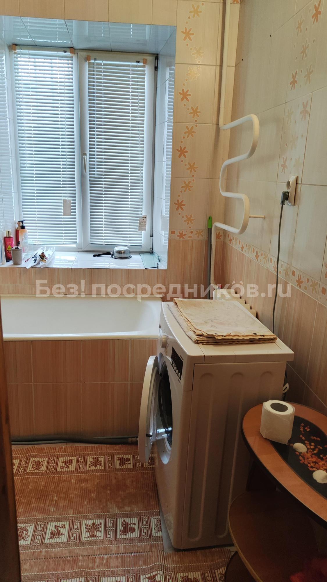 Кухня оборудована кухонным гарнитуром, который останется в квартире. Варочная поверхность газовая, духовка электрическая. Просторная ванная комната с окном экономит электричество и открывает возможность любоваться зеленым двором и принимать ванну под пение птиц летом. Стены и пол ванной комнаты покрыты керамической плиткой.