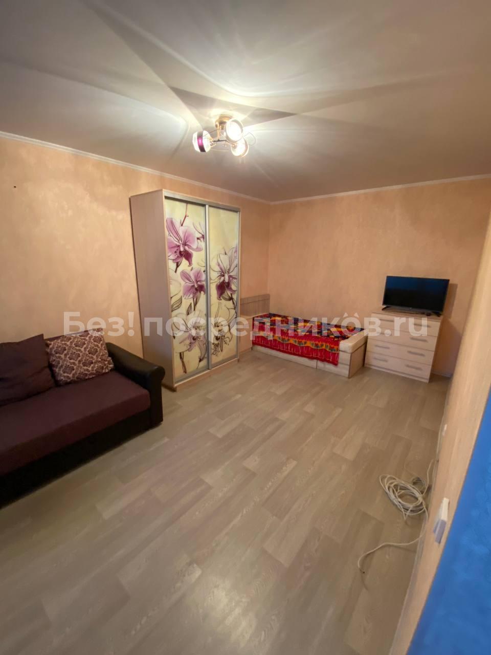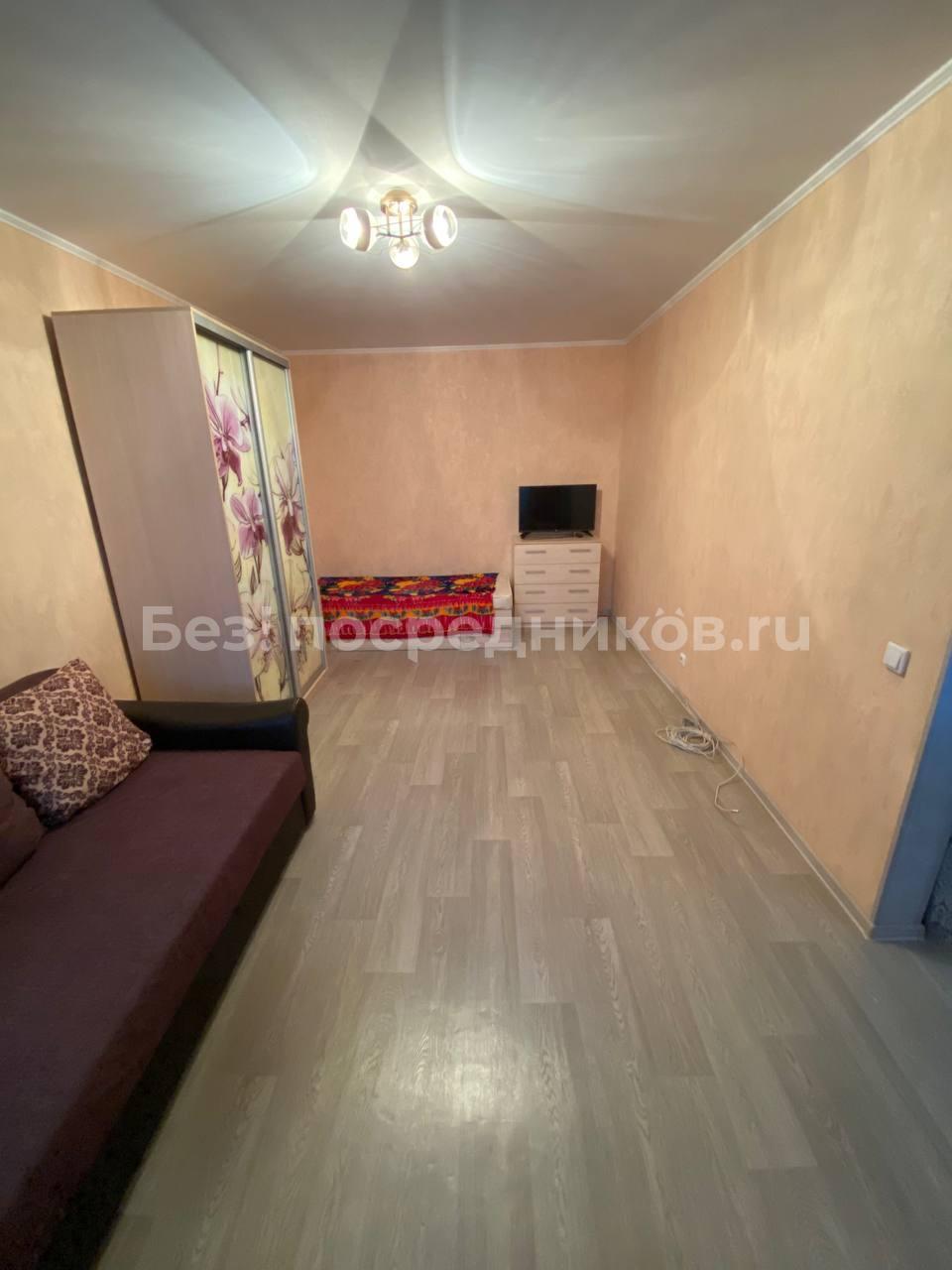 Квартира сдается на длительный срок.В комнате диван, стенка, шкаф для одежды, стол журнальный, стол ...