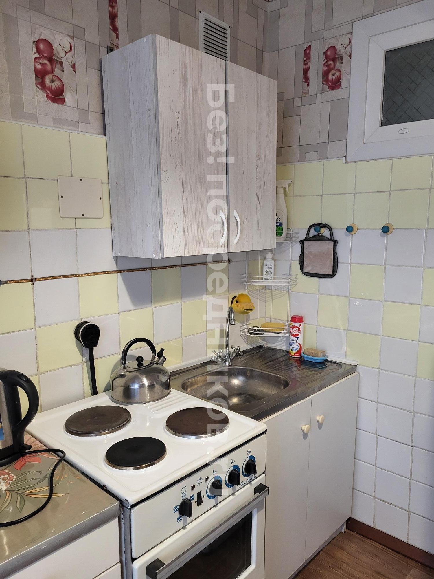Небольшая квартира-студия, 14 кв.м., состояние хорошее. Диван, шкафы, стол, стулья, посуда, чайник, ...