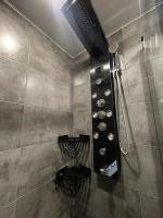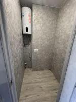 Имеется- кухонный гарнитур с встроенной плитой и духовым шкафом, мойкой с измельчителем, вытяжка, холодильник, бойлер, душевая кабина, кондиционер, стиральная машинка, диван, кухонный стол и стулья, посуда для индукционной плиты.