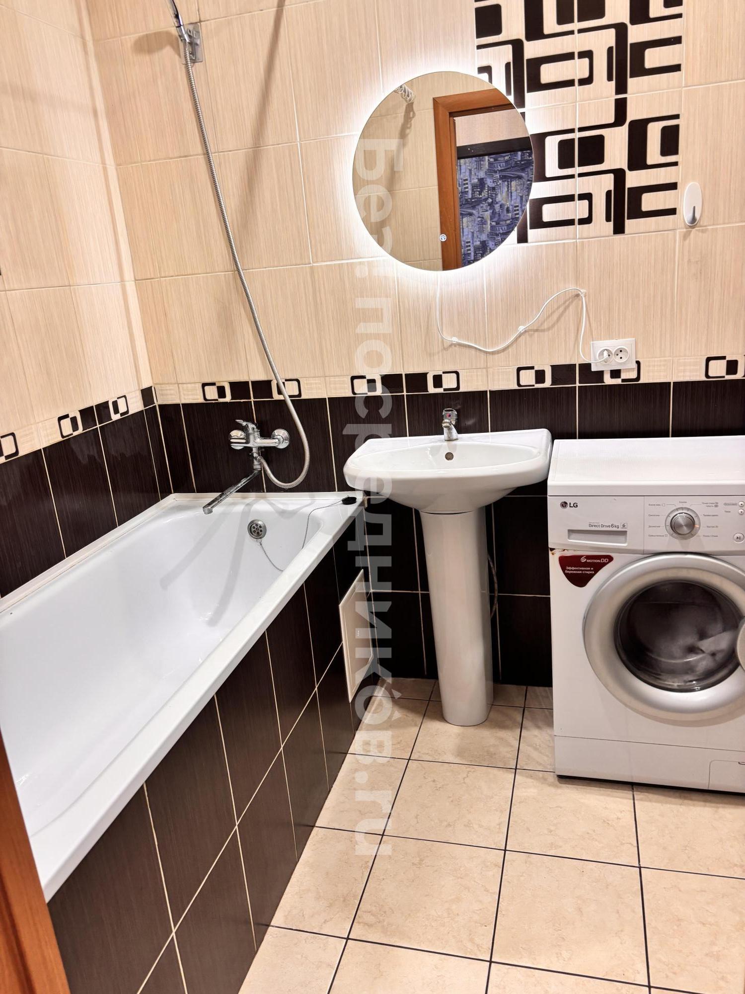 В ванной комнате стиральная машинка и отличный вид на город :)
