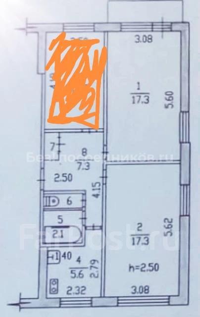 2-к квартира, 55.4 м²25 000 р.