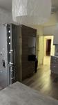 Евродвушка. Лоджия. Кухонный гарнитур с бар стойкой, холодильник, микроволновая печь, стол, стиральн...