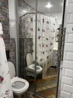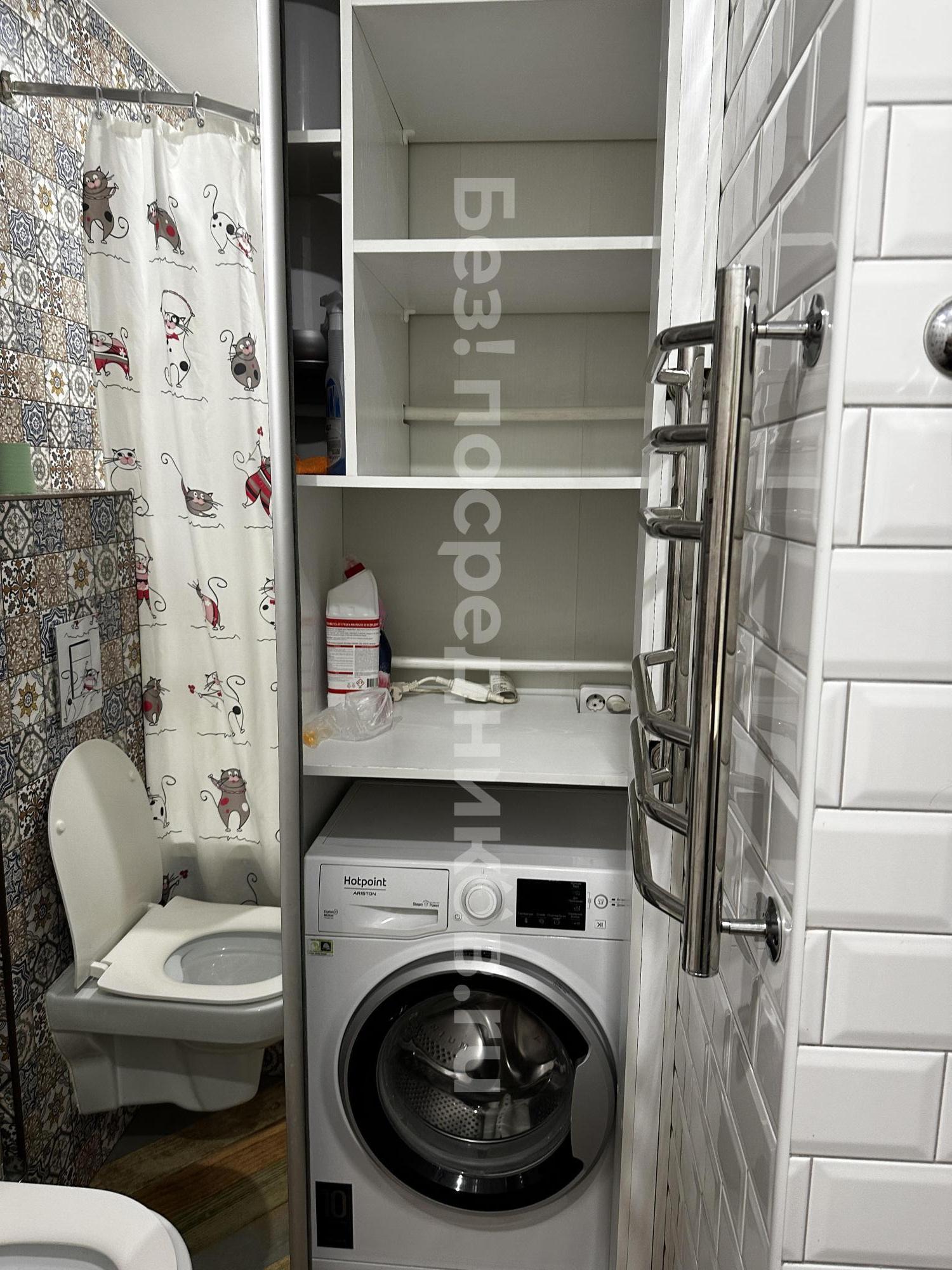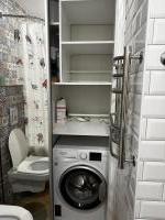 Санузел объединенный с ванной. Имеется стиральная машина, водонагреватель .