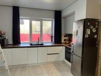 - Просторная кухня-гостиная с современной техникой (холодильник, плита, духовка, посудомоечная машина, стол, диван, стенка, большой телевизор, кондиционер)