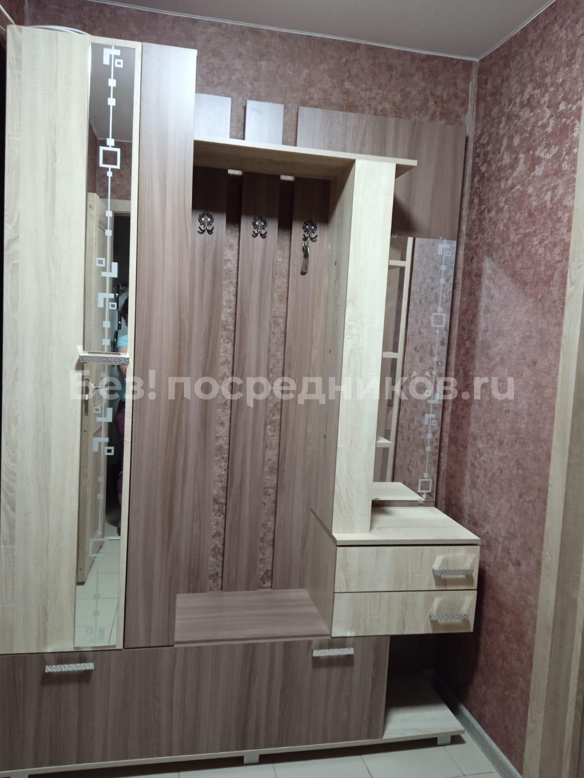 В квартире есть вся необходимая мебель: кухонный гарнитур, плита, холодильник, шкафы, столы, стулья, стиральная машина автомат, диван .Пластиковые окна, балкон застеклен.