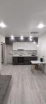 Квартира полностью укомплектована мебелью и техникой (Водонагреватель, Холодильник, Плита, Духовка, Вытяжка, Телевизор 65 диагональ, Кухонный гарнитур, Гардеробная, Шкаф, Диван, пуфики и столы)