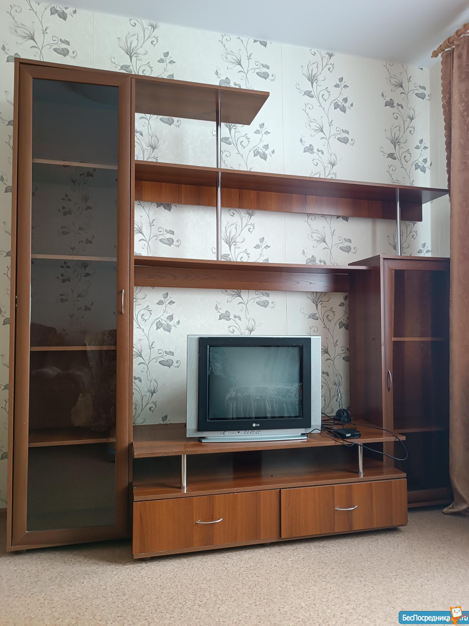 Кухонный гарнитур, духовой шкаф, варочная панель,холодильник, стиральная машина, большой шкаф, кровать полуторка. 20000+счетчик свет, вода. НА ДЛИТЕЛЬНЫЙ СРОК. Сдается без животных.